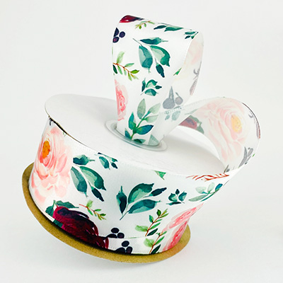 Listón Estampado Begonia Blanco/Multi 1-1/2″ 25 yds