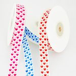 Listón Estampado Corazón Bicolor Blanco/Multi 7/8″ 25 yds